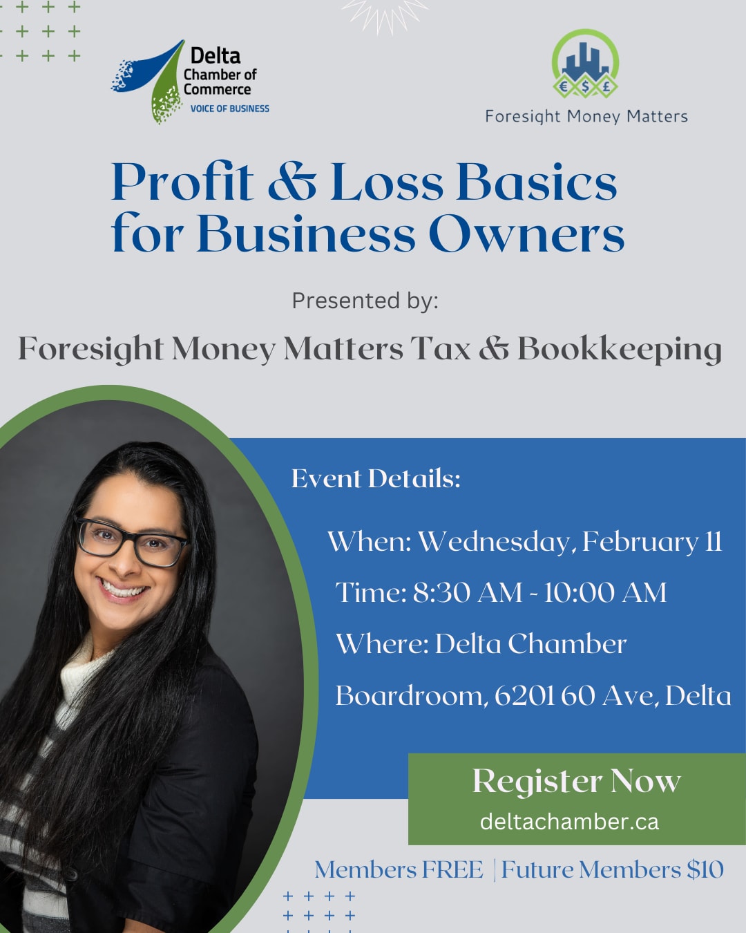 Join us at the Delta Chamber Boardroom for a FREE Member Workshop presented by Foresight Money Matters Tax & Bookkeeping. This workshop is designed to help business owners understand the fundamentals of their Profit & Loss (P&L) statement and use it more effectively to drive profitable decisions. Whether you feel overwhelmed by your financials or simply want clearer insight into what your numbers really mean, this session breaks down key concepts in a practical, easy-to-follow way.
